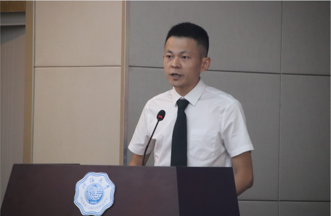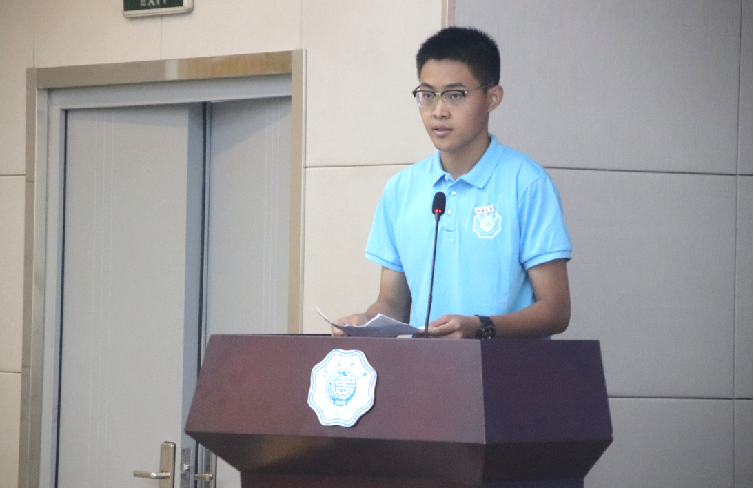 教师代表薛飞飞从自身的学习经历出发,勉励同学们要树立自己伟大的理想,践行“艰苦朴素,实事求是,严格要求,勇于探索”的校训,实现个人价值和社会价值。