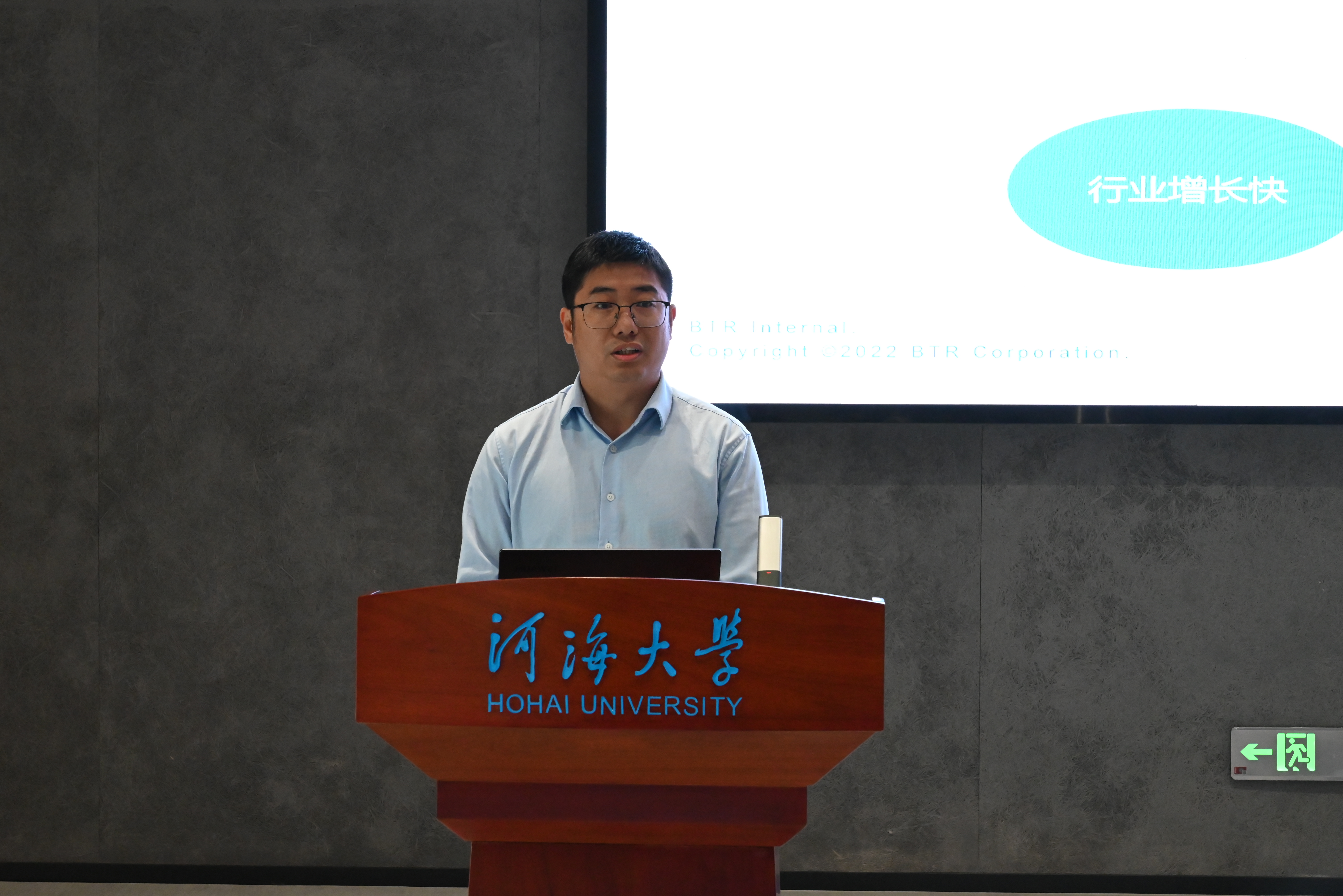 我校优秀校友贝特瑞(江苏)新能源材料有限公司财务总监张毅,以一个非技术人员视角向同学们介绍了新能源行业的现状与发展前景,并表达了对同学们的祝愿。