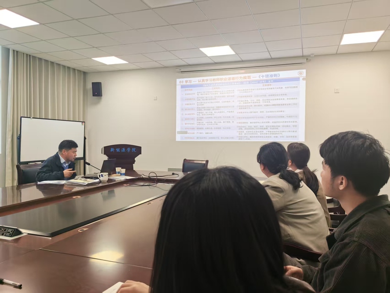 围绕立德树人根本任务,学院将师德建设与校风学风建设深度融合,在校风建设动员大会上,领导班子聚焦班导师队伍师德建设,开展"师德引领学风"专项培训。会议明确要求班导师当好学生"引路人",严守师德底线,将师德规范融入班级管理、学业指导全过程,构建"全员育人、全过程育人、全方位育人"的师德实践体系。