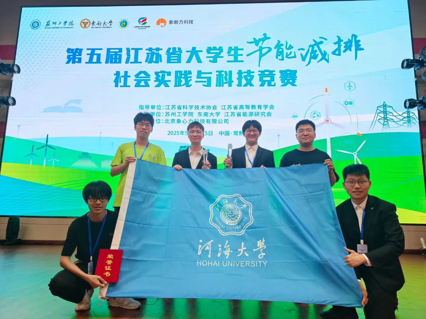 2025年5月25日第五届江苏省大学生节能减排社会实践与科技竞赛决赛在常熟落下帷幕。我校8支入选决赛队伍中5支获得省一等奖以上奖项,其中2支获省特等奖,3支获省一等奖。我校成为全省仅有的5个获得两项及以上特等奖的高校。全校共获得三等奖以上奖项13个,较去年提升30%。