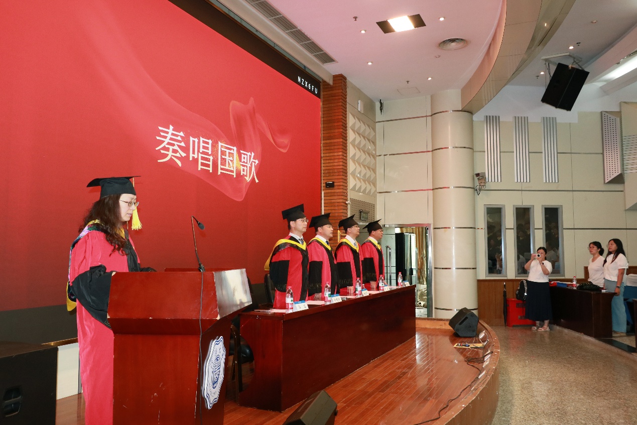 在雄壮的国歌声中,毕业典礼正式拉开帷幕。