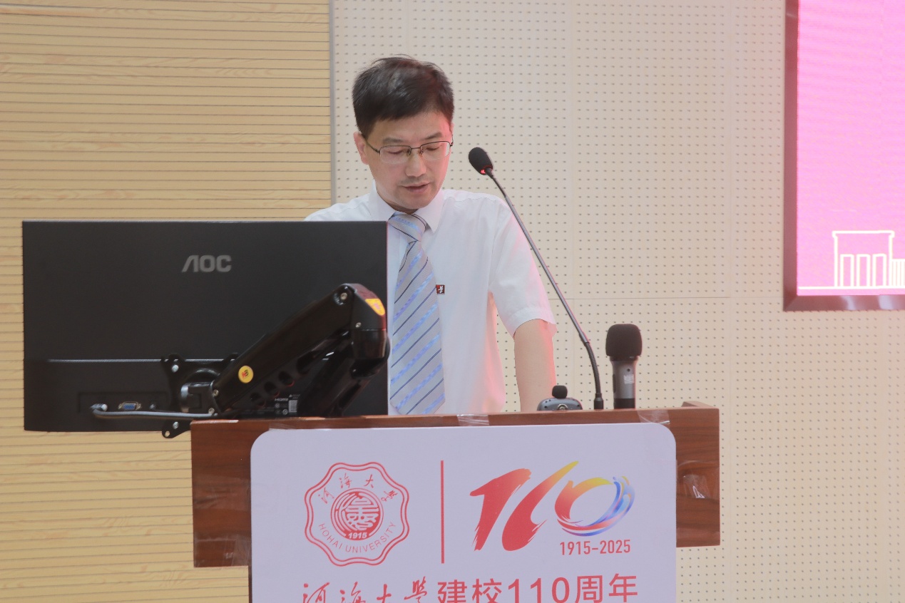 教师代表韩星星副教授以 “河海学子”与 “河海教师” 的双重身份分享感悟。17 年前,他与新生们一样踏入河海学习风能与动力工程专业,如今留校任教,他深知新能源专业的时代价值 —— 当前国家 “双碳” 战略推动行业进入黄金发展期,学院已通过加强师资、完善设施、推进科研,为学子搭建优质平台。他叮嘱新生,大学四年既要 “学好”,筑牢数理与专业基础,培养发现问题、解决问题的核心竞争力;也要“玩好”,积极参与学科竞赛、科研项目与志愿服务,在多元实践中提升综合素养。