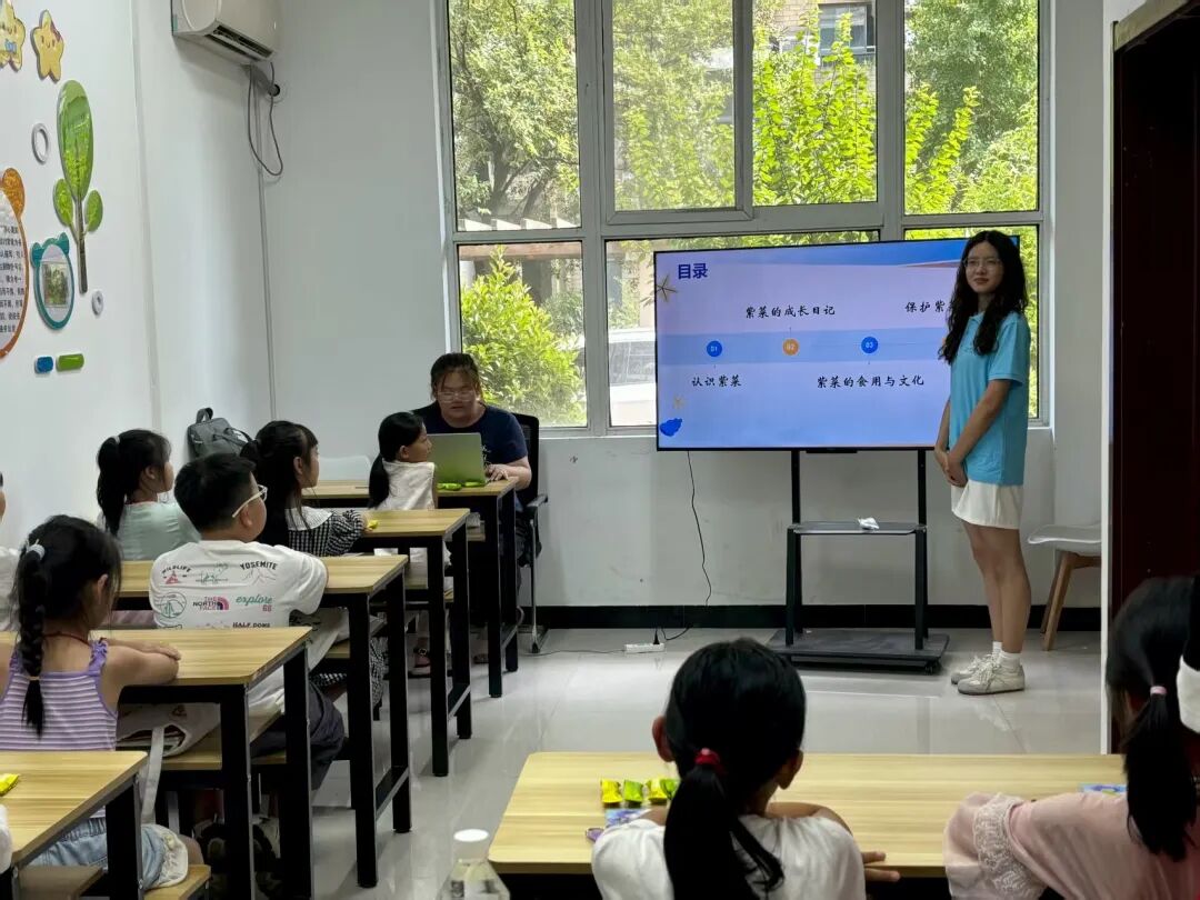 队员为暑托班学生介绍紫菜