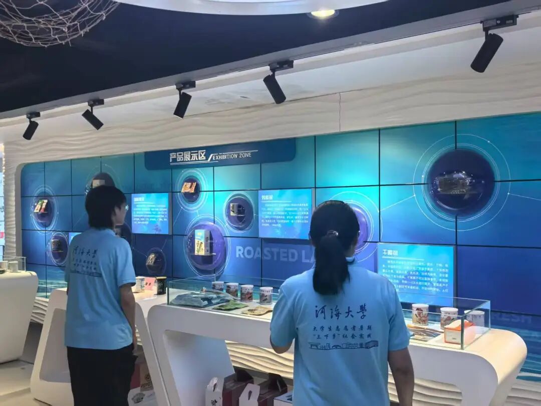 随后,实践团前往大楼二层的赣榆紫菜博物馆参观。展馆涵盖紫菜生长历程、食用历史、养殖技术及紫菜产品四大展区,系统展现了紫菜产业的历史发展脉络。展区内,牡蛎壳、人工养殖网等实物工具与多样化的紫菜产品相映成趣,配合赣榆紫菜专题宣传片,既普及了专业知识,更生动讲述了赣榆紫菜产业的发展故事,为当地群众厚植了文化根基。