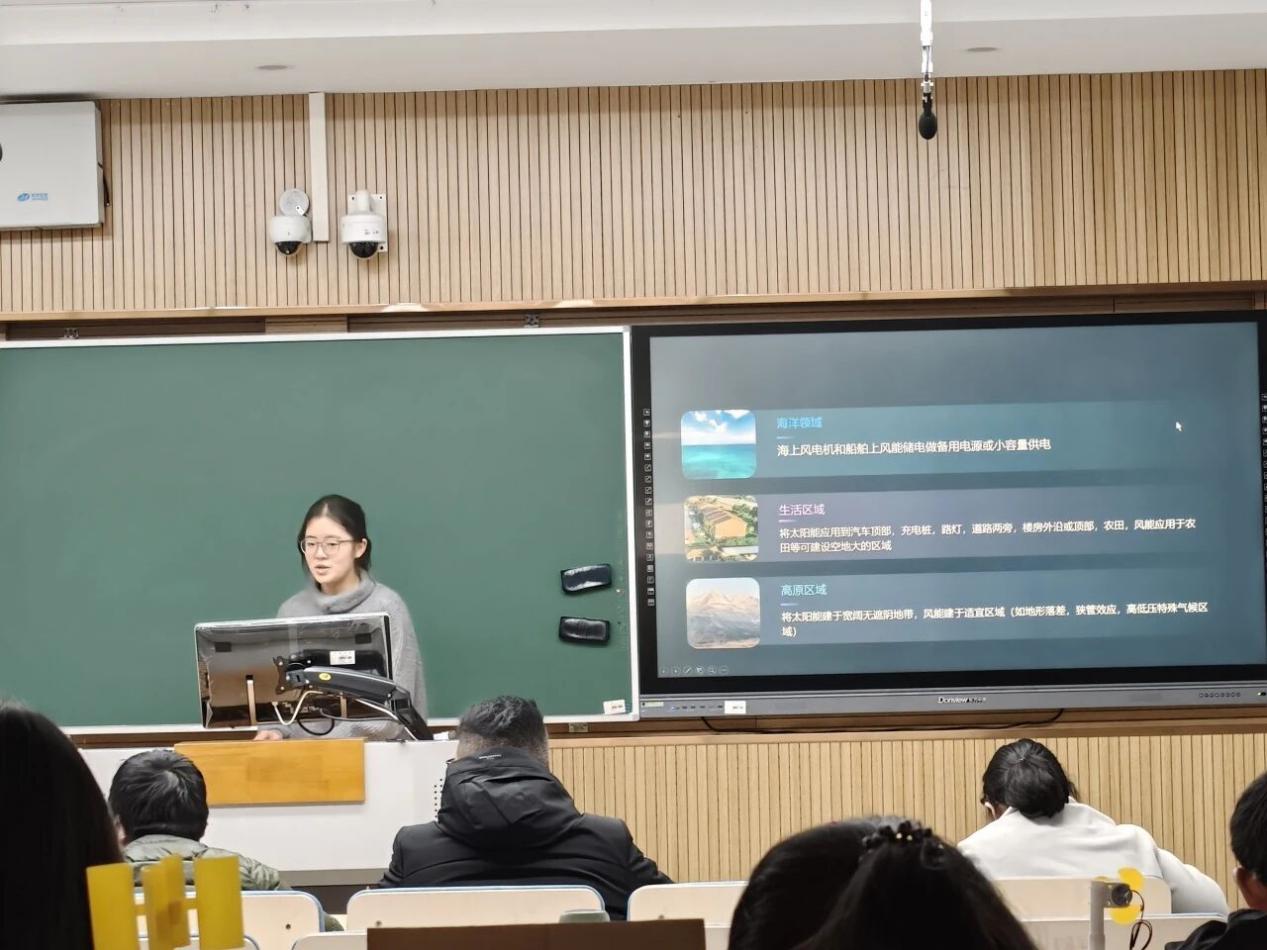 作为聚焦新能源领域的学生社团,新能源科学社团前期积极协助新能源科协完成赛事宣传、参赛团队招募及技术咨询等工作,充分发挥社团在新能源知识普小组围绕灵感背景、应用场景、前景与挑战等进行系统阐述;在实物展示环节,及与实践交流中的桥梁作用,吸引了众多对风光储技术感兴趣的同学组队参赛。本次活动共有 12 组作品入围答辩,设置 PPT 演示讲解与实物展示两个环节。各现场完成模型操作,验证应用实践的可行性。评委老师针对展示内容提出针对性问题,并从美观性、创新性、可行性、经济效益等维度进行评审打分。